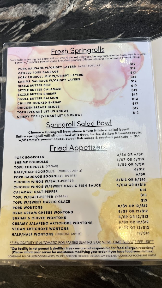 The menu at Pho Momma boasts a variety of mouthwatering dishes sure to tantalize your taste buds. Start your meal with a refreshing Sweet Iced Tea with Jelly for $7.50 or the revitalizing Iced Milk Tea at $7.00. For something heartier, the restaurant is renowned for its aromatic chicken and beef pho. Many customers rave about the robust broth of the beef pho, often served piping hot, paired perfectly with beef tender and fresh cilantro that dances on your palate.